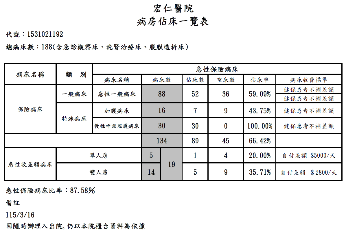 床位資訊